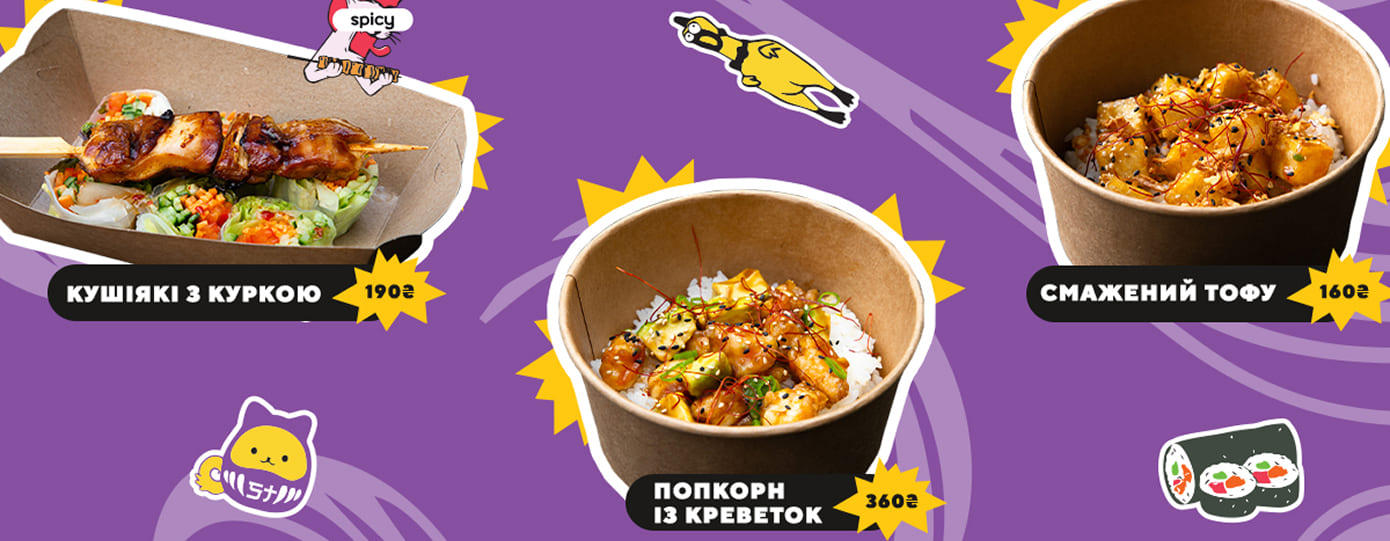 Створити бренд, який влучно передає дух японської стріт-кухні, її енергію, швидкість і характер. Візуальна мова мала бути яскравою, динамічною, з гумором і сильним емоційним меседжем.