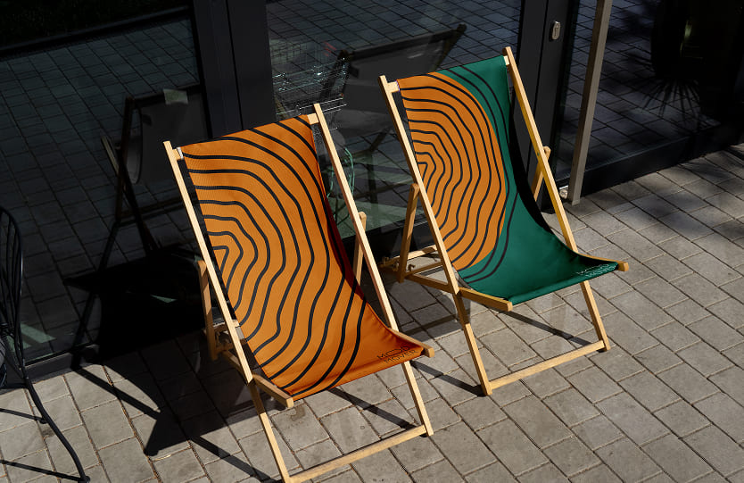 У шезлонгах — не просто сидять, у них затримуються. Наклейки на вікнах не просто інформують, а створюють композицію. Усередині — гра форм і світла, де хаос виглядає спокійним, а мінімалізм — емоційним.